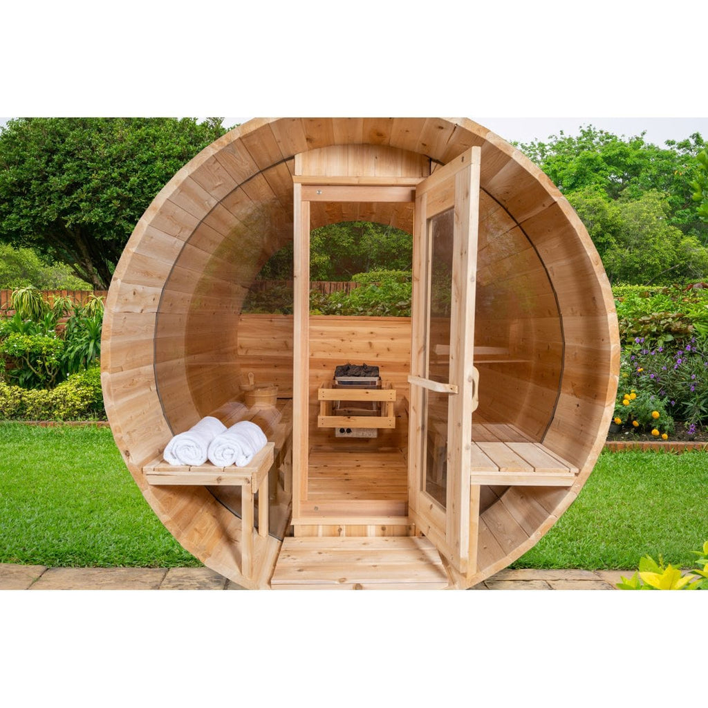 SaunaLife E7G Sauna Barrel with Glass Front - 4 Person