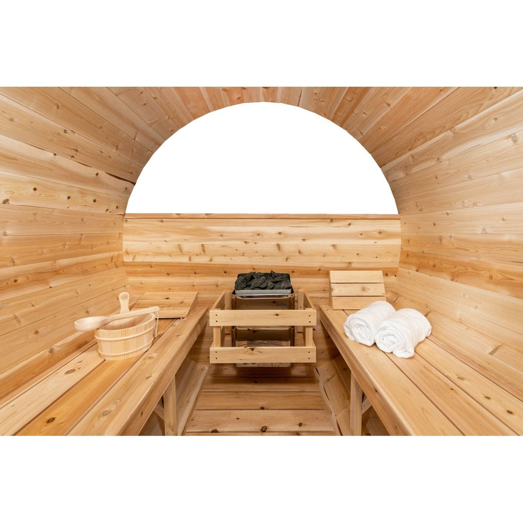 SaleVendor:Golden DesignsGolden Designs "Arosa" 4 Person Barrel Traditional Sauna - Pacific Cedar